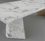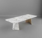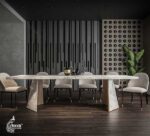Keep your friends and relatives entertained while sharing your happy meal around our Daisy Dining Table. Standing on two stylish half wooden and half marble pillars with marble top. … This 8 seater chic and classy marble table allows a good enough space to share your favourite cuisines and drinks while having a conversation over different day to day life topics.
