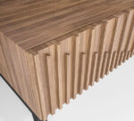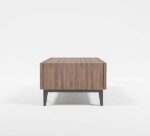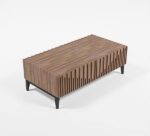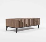 Our coffee table is a spot where both your friends and your living room’s style will gather. A piece like this is a great option for gathering both in on trend modern style. Crafted from manufactured wood surfaces…found on square tubular metal legs, it mimics the look of concrete for a contemporary look. This clean-lined silhouette and angled legs of this table give it a touch of mid-century appeal at the foot of your sofa.