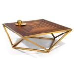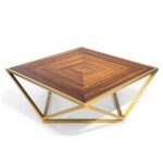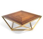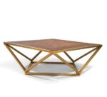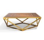 Blending rich color with approachable contemporary design, this charming center table is an excellent … addition to any seating ensemble. The tabletop is crafted of solid reclaimed wood, showing off natural graining and character. Hand finished and hand distressed, this piece lends one-of-a-kind charm to any space in your home. Its frame is crafted from solid metal with a Brass finish for a glint of glamour.